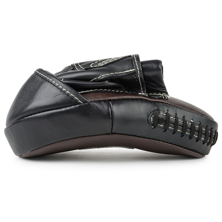 Boon Sport's Brown & Black FMHC Curved Hooded Muay Thai Focus Mitts are a classic curved focus mitt that allow strikes to be caught more efficiently making them ideal for punch/elbow combinations. The curved design shapes the mitt to your hand with the hood providing protection to your fingers from injury by stray strikes.